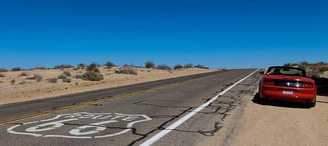 カーズに登場する「ルート66」は実在するアメリカの道路です。「ラジエイター・スプリングス」こそ架空の街ですが、ルート66沿いにある建物や風景は実物そのもの。