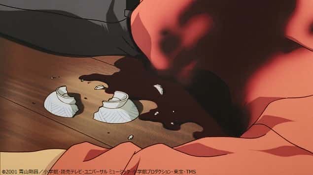 一方、原佳明を殺害した犯人はジン。如月が訪れた時に原は既に死んでおり、如月は連続殺人事件に見せかけるためにおちょこを遺体のそばに置いたのだった。