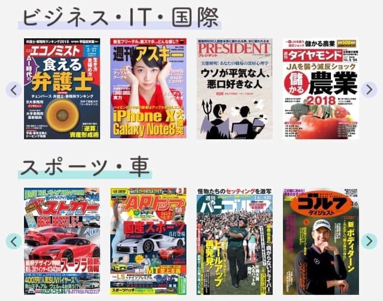 「雑誌読み放題」なので1番重要なポイントは「読みたい雑誌があるか」ですよね。